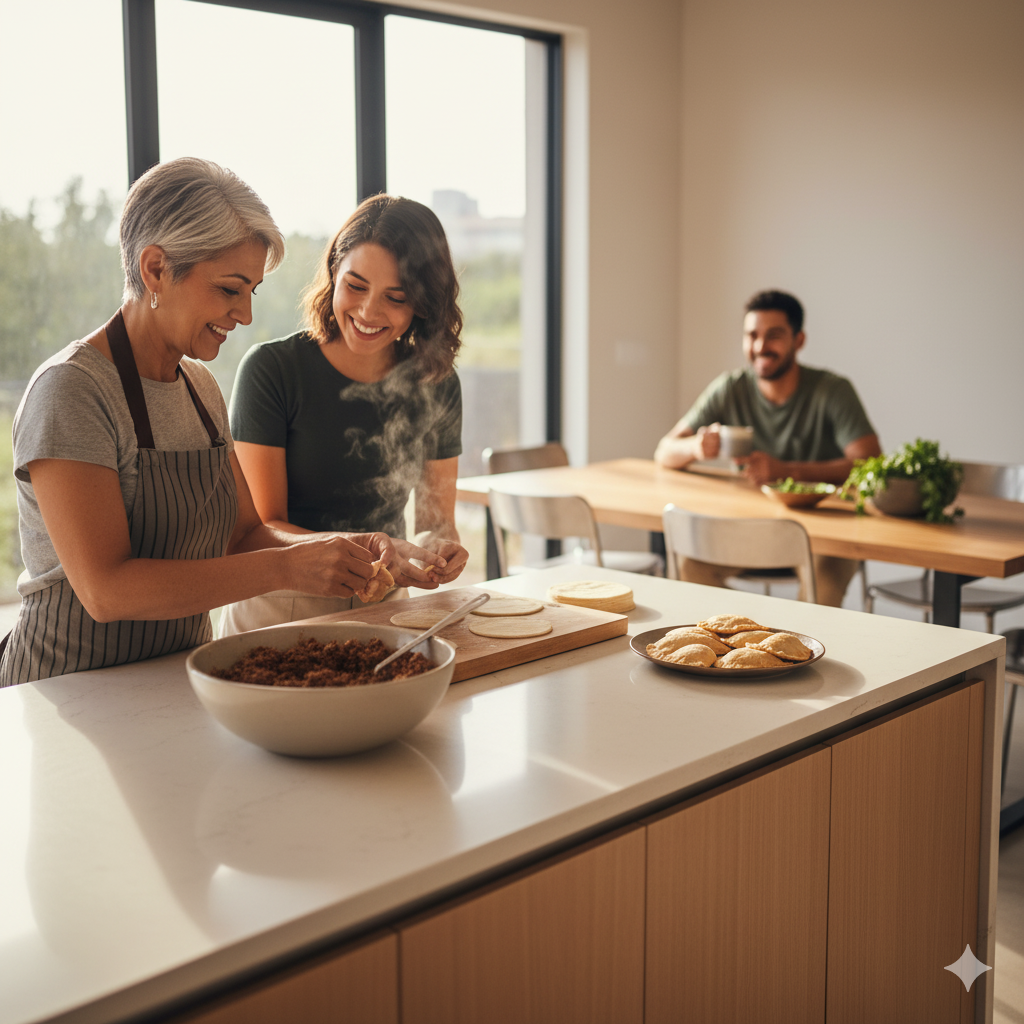 Our journey began around a family table, sharing recipes handed down through generations. Each empanada was more than food—it was a memory, a story, a moment of joy. Inspired by this, we decided to bring these flavors to the world, experience at a time, so everyone can taste a piece of our family tradition.